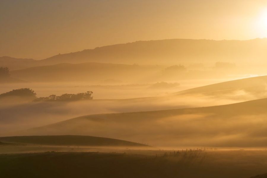 I headed out into a foggy morning. I knew there was a chance that I might be able to get above the fogs and ground mists to make this more dramatic image of the local hills