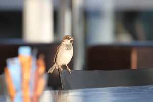 Part of the Auckland Airport's flock of English Sparrows that can be found in and around the food court areas