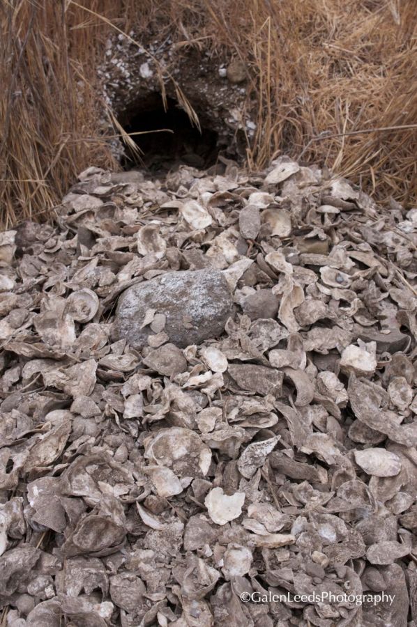 A badger hole dug into an oyster midden