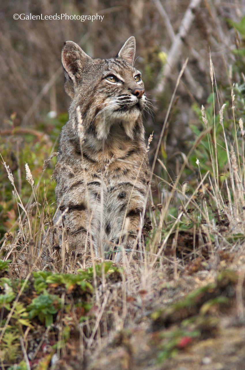 Contempaltive Bobcat on a hillside above Tomales Bay