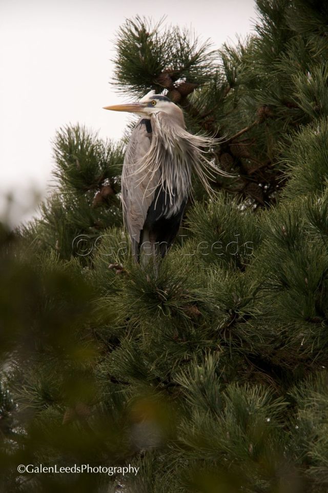 I was never able to keep all of the lower, blurred out foliage of the tree I was hiding in from the frames’ of the images, but I am still happy with the images, as the blurred out parts sort of blend into the foliage of the tree that the heron is perched in.