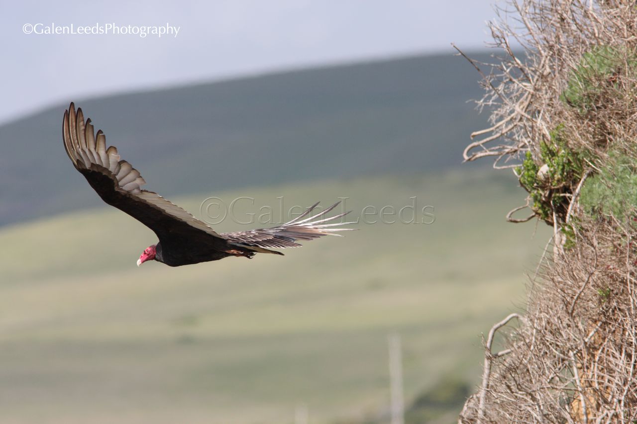 Turkey Vulture soaring along the low bluffs of Tomales Bay