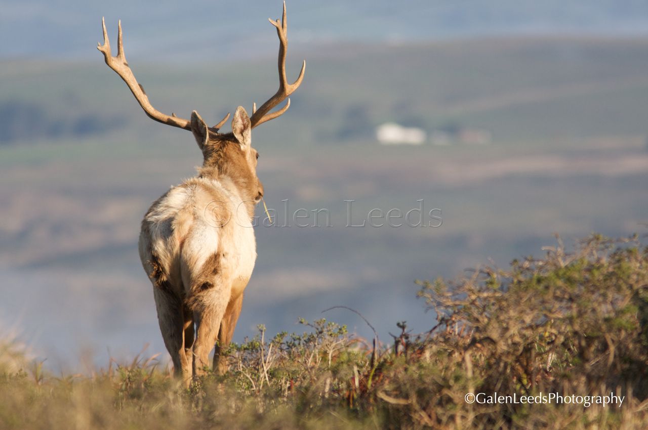 A bull elk walking the headlands of the Point Reyes National Seashore