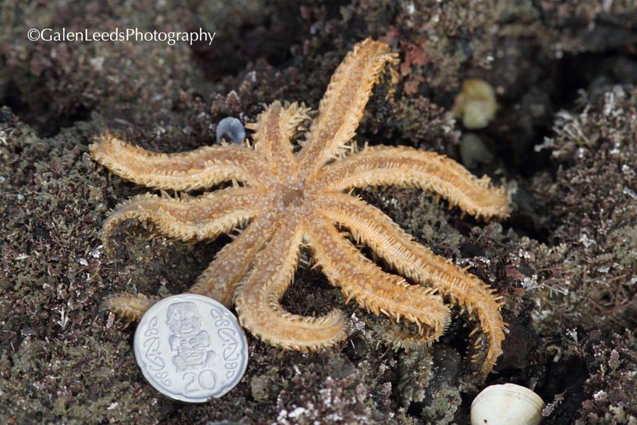 This New Zealand 20 cent piece helps give a sense of how small this star fish is, especially when compared to the larger starfish