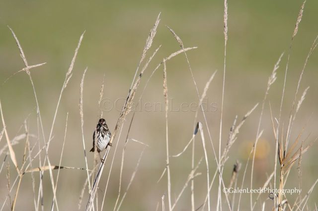 The composition of this photo is also pleasing. The tops of the grasses are visible (for the most part. Nothing is really centered in the image. The sparrow is down and to the side. The grasses criss cross while stretching towards the top of the frame. The shallow depth of field grabs and focuses just on the bird and and a narrow row of grass, everything else that is not important blurred away from our consciousness. A simple image with little distraction.