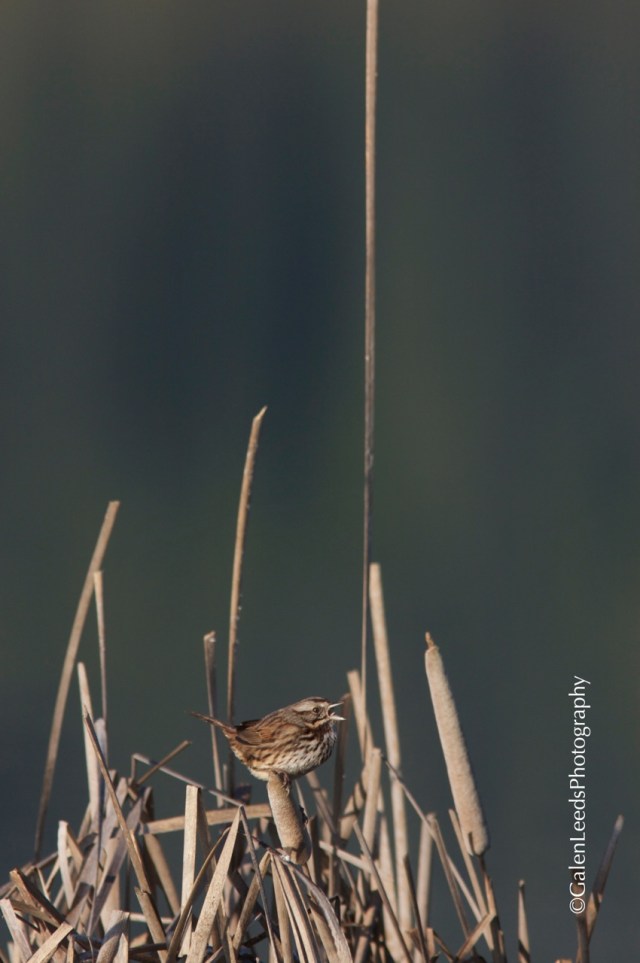 The sparrow was by a small tidal channel that I was kayaking down, the cat tails the last remnant of a previously fresh water habitat.