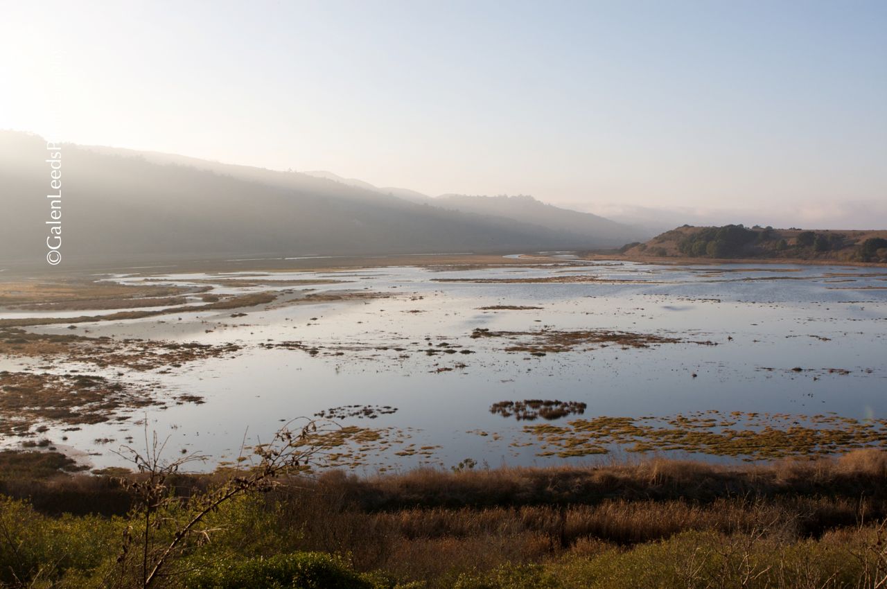 Looking down on the wetlands from the Point Reyes Mesa on the day after the breach, and the day of the first flood