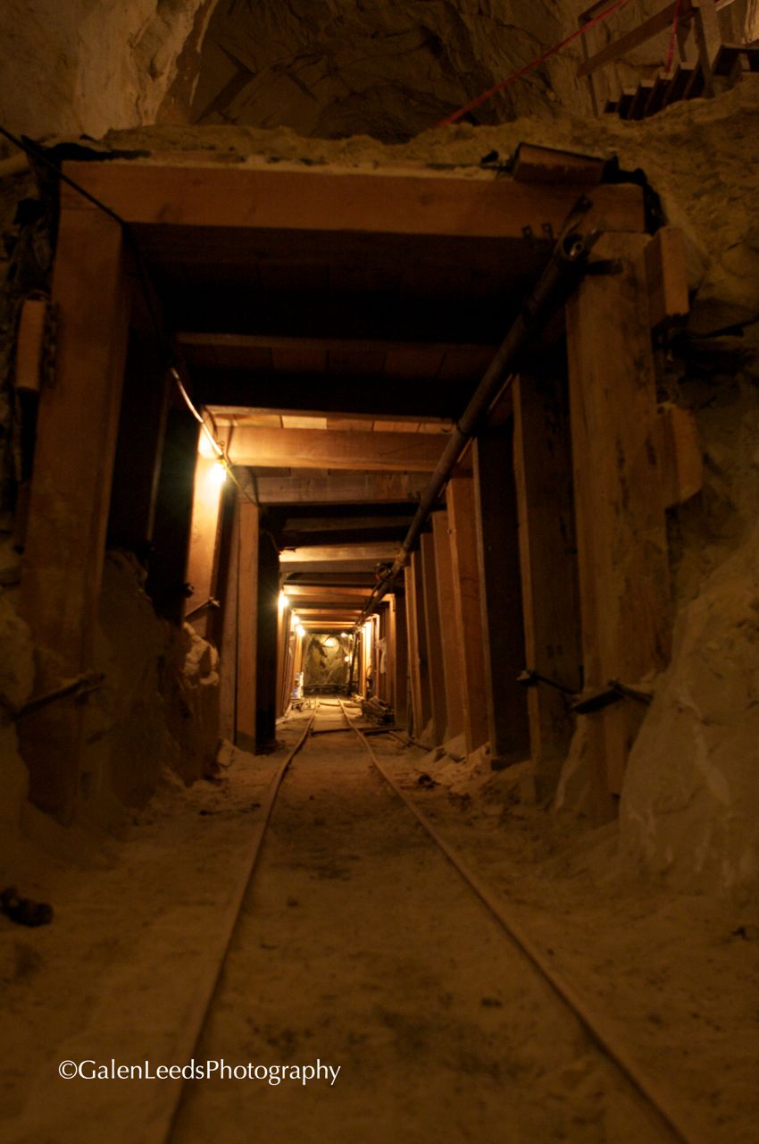 Rails running through the the sand stone tunnels