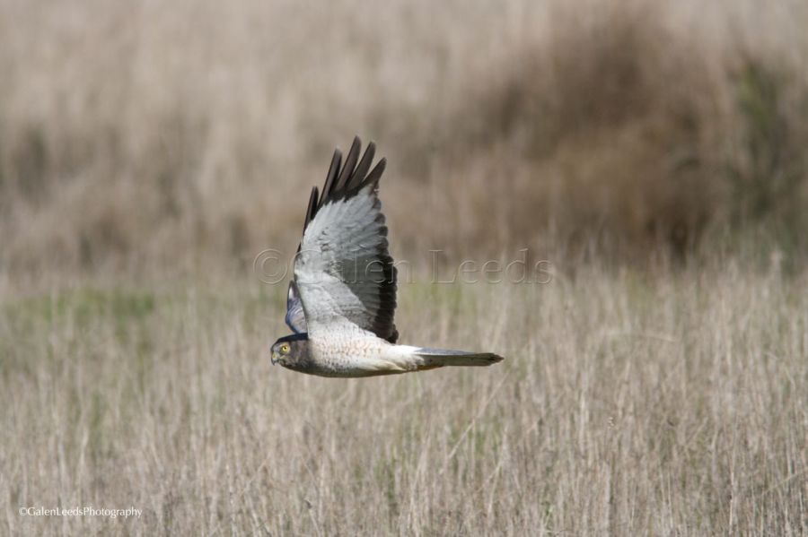 Male Northern Harrier flying through the hills of Tomales