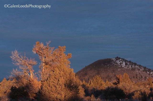 I had only seen the narrow strips of land within my headlights on my drive into Lava Beds National Monument, so when I woke, it was to an unfamiliar landscape. Volcanic rock, scrub and trees dominated the nearby landscape, lava domes dotted the more distant horizon. Clouds filled most of the sky, and the sun was still a little while from rising. I put on my gloves, down jacket and hat to explore more deeply my temporary home.