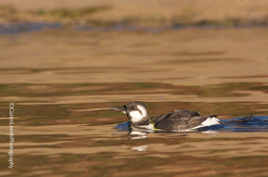 This Common Murre ended up getting a little Eel Grass wrapped on its bill when it surfaced