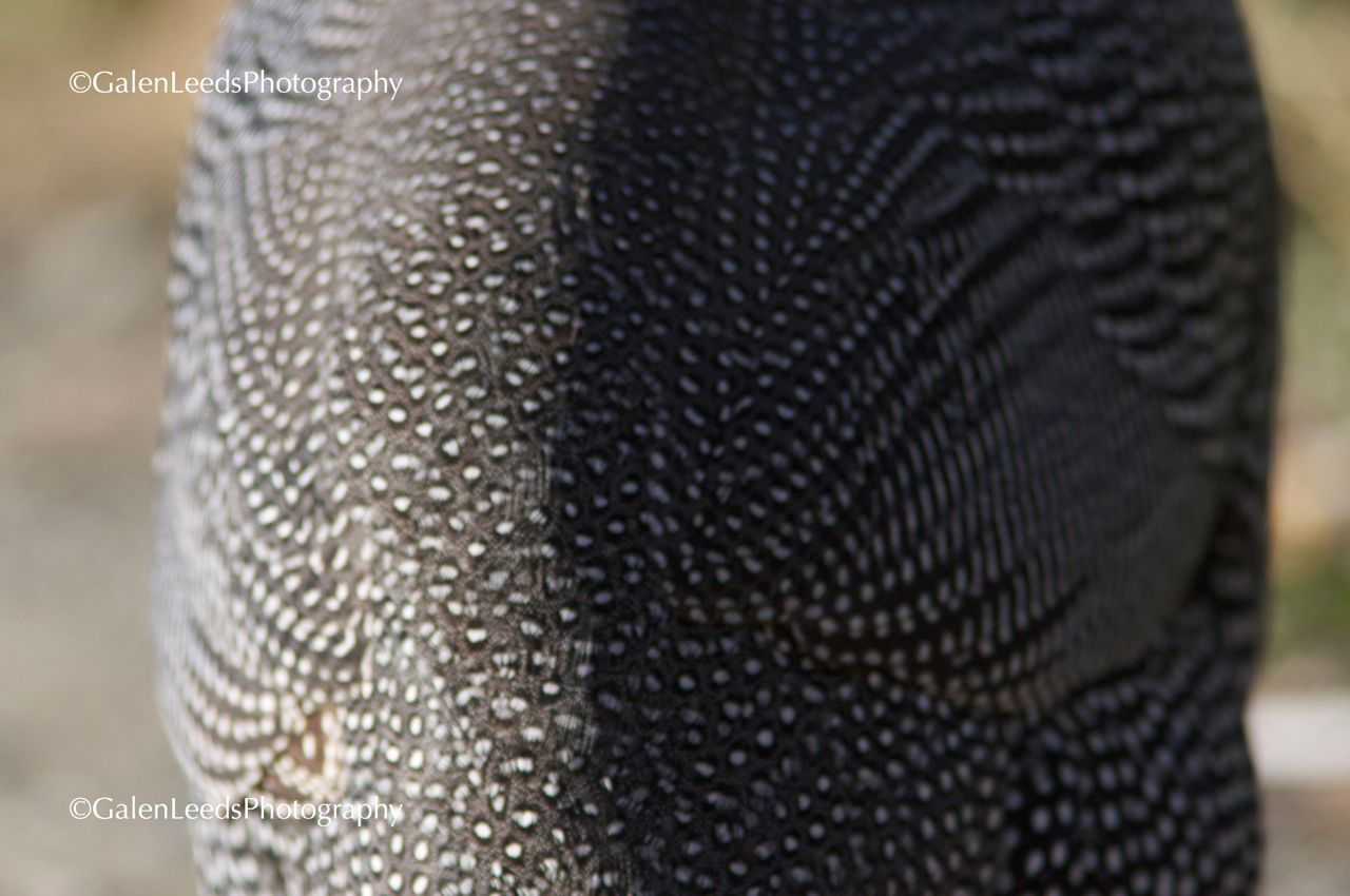 Close-up detail of the Guinea Fowls mesmerizing patterning
