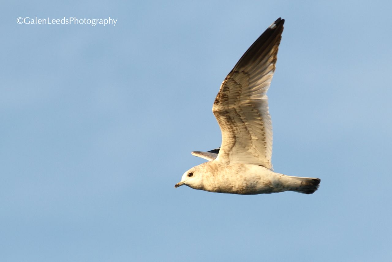 And here is a very non-elegant bird that flew through right after the terns, a first-winter Mew Gull. Notice how unsleek and and inelegant it is, yet fun in its own way?