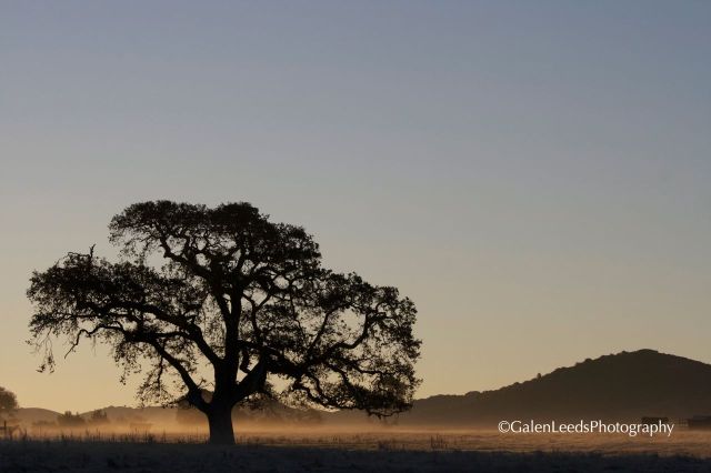For this image, I realized that I could nicely silhouette this oak, thanks to a low lying mist. If the mist hadn’t been there, the trunk of the tree would have been lost in the dark colors of the hills behind. The mist though, was lit up, giving something to contrast the tree against, and one thing that is important to silhouettes is that contrast.