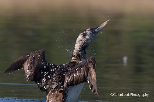 By watching Common Loons and Red-throated Loons, I was able to predict this rare Yellow-billed Loon rising up out of the water and shaking off droplets